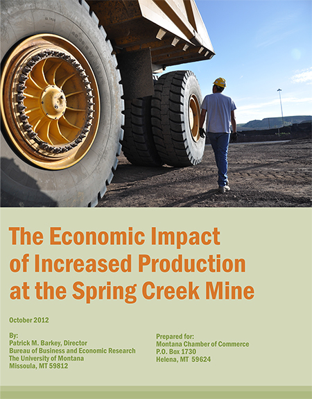 The Economic Impact of Increased Production at the Spring Creek MineBy Patrick M. Barkey This report summarizes the findings of an investigation into the likely impacts on the Montana economy of a significant expansion in coal production at the Spring Creek mine operated by Cloud Peak Energy near Decker, Montana. The Bureau of Business and Economic Research at The University of Montana, using a state-of-the-art policy analysis model, analyzed the employment, income, production, and other economic flows that would result from a hypothetical 20 million tons per year increase in mine output. The analysis indicates that such an expansion, if it were to take place, would have a sizable impact on employment, income, production, population, and tax revenues in the state of Montana. |